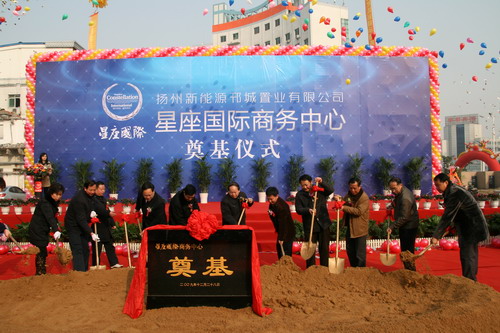 2009年12月28日,位于邗江中路的新能源邗城星座国际商务中心隆重举行奠基仪式。邗江区政府、邗江建设局、新能源集团、邗江城市建设置业有限公司等众多领导嘉宾参加了此次奠基仪式。江苏新能源置业集团董事长包广林在发言中表示,作为新能源置业与邗江城市建设置业有限公司共同打造的星座国际商务中心,将在高起点、高要求下,打造扬城商务中心大厦的新标...