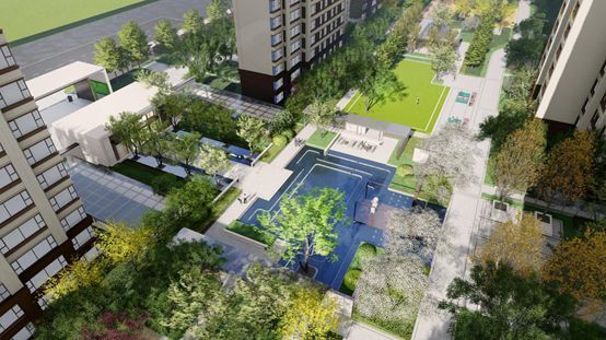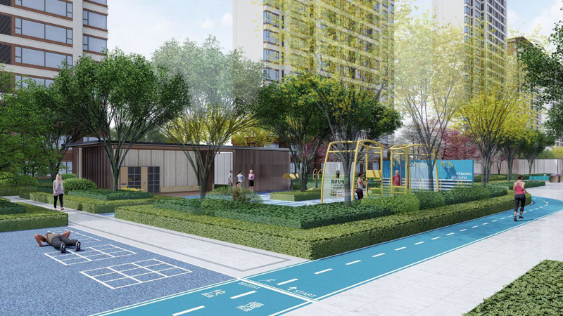 秀/书香奥林——全龄活动运动区包含羽毛球场,340米环形跑道,力量训练区,户外瑜伽及活动热身等区域。