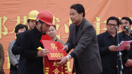 4月22日下午17:30,奥都花城第一次工程质量竞赛表彰大会在奥都花城工地现场隆重举行。据了解,此次大会是对参与第一季度奥都花城工程建设的所有施工班组、一线工人,就工程质量竞赛结果的总结和表彰。新能源虎豹公司深感:品牌源于品质,品质源于质量。自奥都花城开工之日起,公司就下定决心,一定要把奥都花城建设成为老百姓放心的房产和扬城房产质量的新典范。质量离不开施工单位的整体实力和一线施工人员的不懈努力,质量更需要从源头抓起。但奥都花城坚持认为,质量的打造离不开业主的直接监督。所以奥都花城千方百计地营造抓工程质量的浓烈氛围。此次大会上,由开发商给施工单位和施工一线质量功臣颁发奖金的做法在扬城尚属首例。会上,业主代表李女士说,新能源的房子质量好,信誉高是历史,只能代表过去。抓质量是一个长期的过程,一刻不能松懈。她表示将一如继往地监督奥都花城的工程质量建设,真正让自己买房放心。