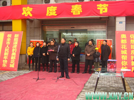 正月初二上午9:30,奥都花城置换业务开办仪式在售楼中心隆重举行,集团公司领导参加并发表讲话。 奥都花城是一座26万平方米大型运动健康主题的社区,其将运动、教育;融入社区居住的理念,创造了运动生活崭新模式??⑸绦履茉椿⒈?,坚定不移地做最有责任感的开发企业,继召开工程质量建设与准业主座谈会、聘请兼职质量监督员后,此次推出又一创新举措--旧房换新房;服务,删繁就简,专业估价。