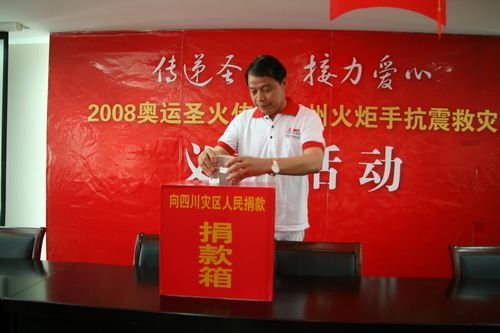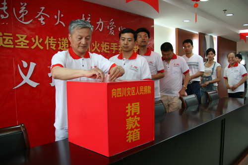 5月17日上午10时,扬州50多名奥运火炬手齐聚公元国际大厦,通过爱心捐赠表达了他们对灾区人民的一片关爱。本次捐款活动中50余名火炬手及部分护跑手共计捐款17万余元,其中新能源集团董事长包广林捐款10万元整。