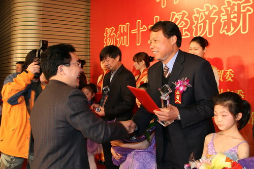 一年一度的十大经济新闻人物;评选,堪称扬州经济奥斯卡;。 3月17日,由扬州市经贸委、扬州日报社主办,团市委、扬州晚报、扬大经济学院承办的中国银行杯;扬州十大经济新闻人物;颁奖典礼在迎宾馆隆重举行。市委常委、宣传部长袁秋年,市人大常委会副主任孙永如,副市长王玉新,市政协副主席朱正海出席颁奖典礼。