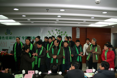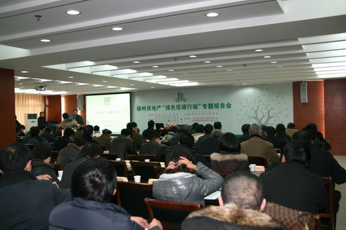 由扬州市人民政府、全国工商联房地产商会、市房管局、市地产商会、市房地产行业协会、新能源置业集团联合发起的扬州房地产业绿色低碳行动; 2009年12月28日下午在在扬州公元国际大厦正式拉开帷幕。会长江苏新能源置业集团董事长包广林刚宣读完《扬州房地产业绿色低碳行动倡议书》就得到了在场所有房地产开发企业的积极响应,纷纷在绿色低碳树;上签下了自己的姓名。全国工商联房地产商会会长聂梅生、江苏省工商联房地产商会副会长肖梅、市人大常委会副主任孙永如等见证了这一行动的开始。