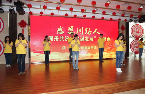 在江苏新能源置业集团一年一度的感恩节到来之际,5月6日下午,新能源;和施工单位、供应商等代表聚会一堂,共谋新常态下的房地产发展大计。
