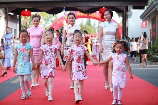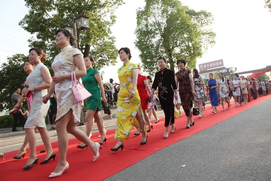 这次盛会的主题是千人秀;美贺城庆,各项活动当然紧紧围绕城庆主题。开幕式暨我行我秀,同贺城庆;旗袍走秀入场仪式于8月22日下午4点30分在豪第坊小区门前火炬广场举行。上千名身着各色各式旗袍盛装的美女们风度翩翩、身姿婀娜,踏着红毯缓步走到长长的签名墙前,以明星的风范挥笔留下自己的名字,参与者们掩饰不住自己兴奋和激动的心情,一个个面庞上洋溢着欢乐和自豪。随后,美女们走进豪第坊,在园区内信步漫游,浏览胜境,同时选择不同的景点和不同的角度开始自拍,并且把自己的自拍靓照纷纷上传到微信群中,扬州美、我也美;,让参与者们分享,让围观者们尽情欣赏,将城市的美丽和人的优雅完美镶嵌在一起,真可谓珠联璧合。