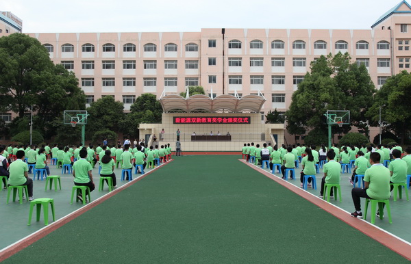 活动开始,邗江区实验学校九年级学生代表宣誓发言。接着,一批品学兼优的初三学生登台领取新能源双新教育奖学金,有50名学生获得一等奖,每人奖金500元;有130名学生获得二等奖,每人奖金300元;有320名学生获得三等奖,每人奖金100元。本次共发奖学金96000元。