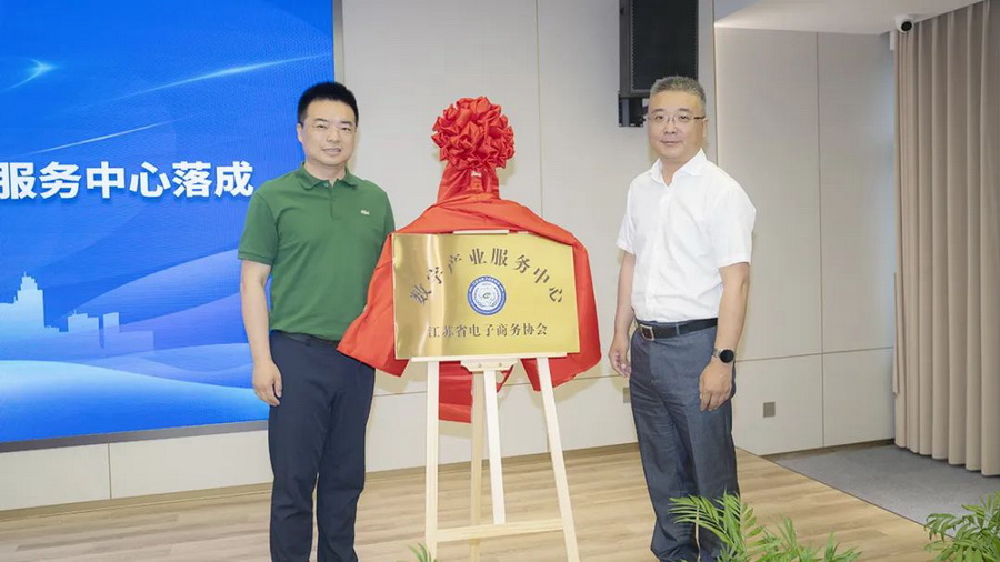 在热烈的掌声中,王磊和林云共同为江苏省电子商务协会数字产业服务中心揭牌,并正式任命王毅为数字产业服务中心主任。